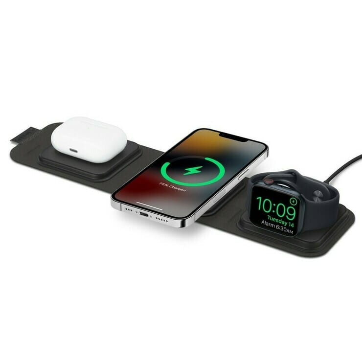 Roll out the Mophie 3-in-1 Travel Charger with MagSafe and it’s ready to juice up your iPhone, Apple Watch and AirPods. Just drop the devices on their appropriate wireless charging mat. And, to make it easier to take on the road, the accessory comes with a carrying case.