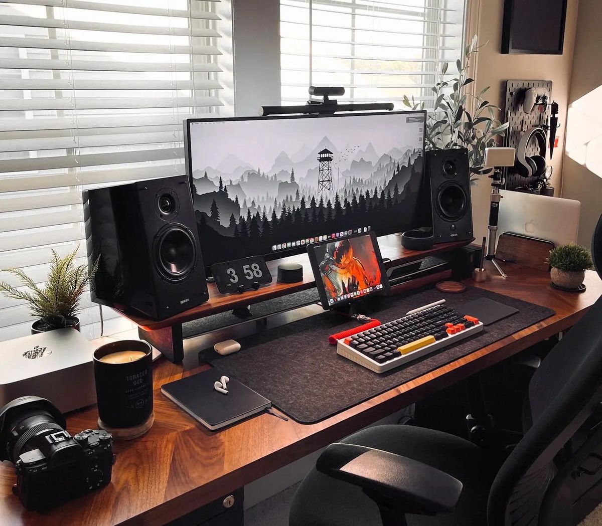Today’s featured setup plays hardball with a PC and Sony PlayStation, but it also covers the Apple bases. In addition to a powerful Mac Studio sharing time on the ultra-wide 4K display with the PC, the workstation boasts a MacBook Pro and an iPad Pro.