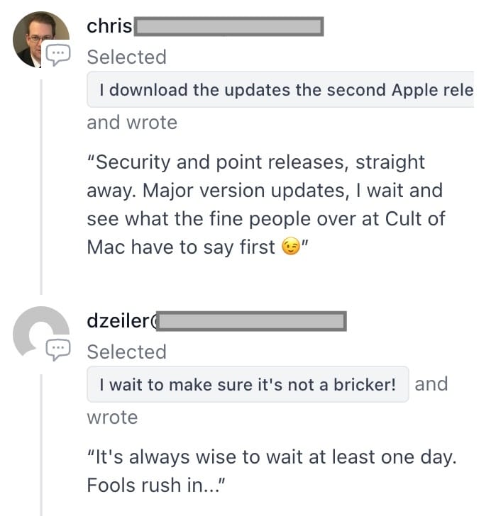 Results from yesterday’s poll: Do you update iOS as soon as it drops or wait a while?