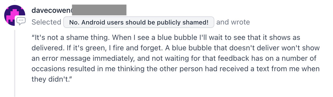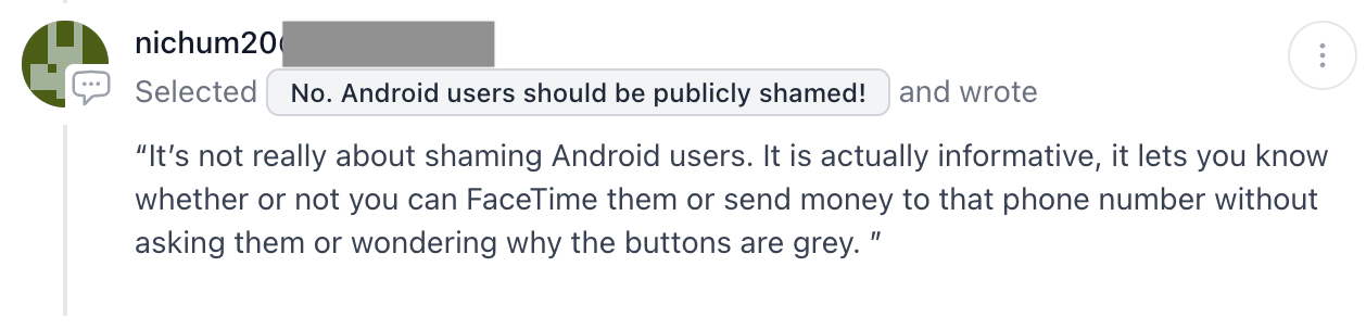 Results from yesterday’s poll: Should Apple end the green bubbles of shame?